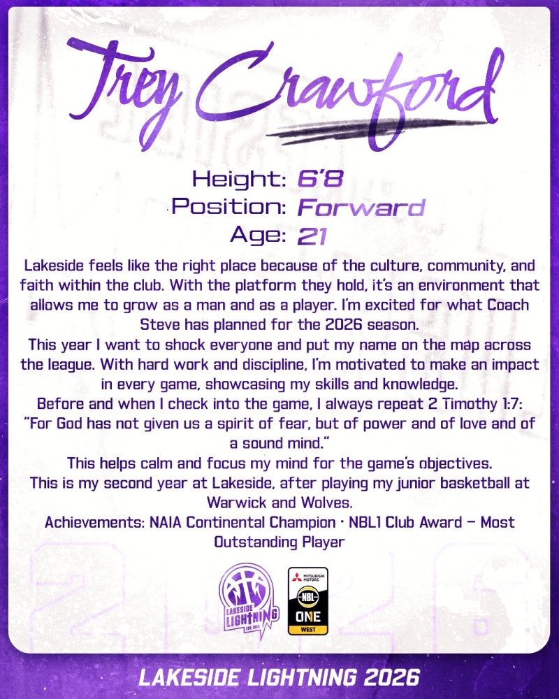 It’s exciting to have Trey back at Lakeside for season 2026. He is an exceptional athlete, who is dangerous in transition and a tough defender - he has an outstanding work ethic and his game is continuing to develop as a result.