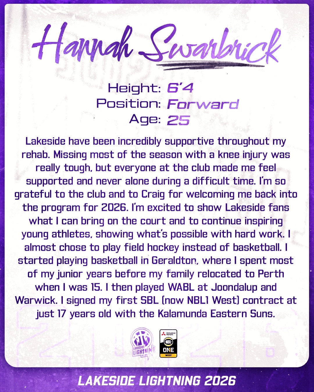 Hannah has good size, plays physically, presents well inside and has several years experience at the NBL1 level. Her consistent effort, focus and communication throughout practice and games are a great fit for our team culture.